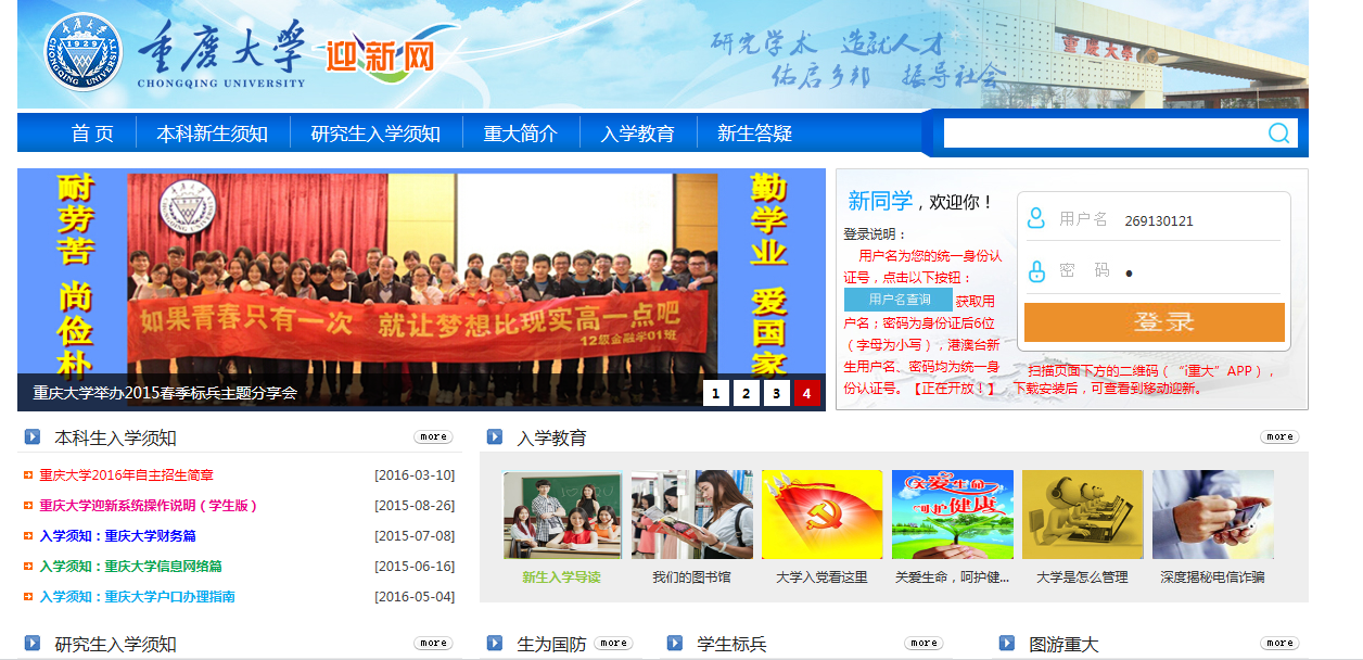 研究生新生登录迎新网:http://rf.cqu.edu.cn/